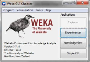 Once you have selected one of the tools, its button will be greyed out. Weka provides the Explorer, the Experimenter, the Knowledge Flow and the Simple CLI interfaces.