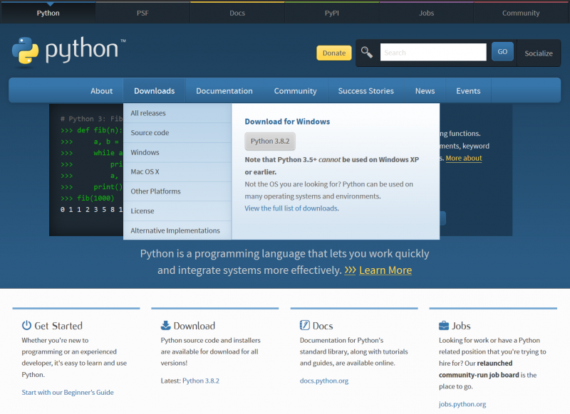 Click on the Latest Python 3 release; do not select 2.7, unless you know why you want 2.7.